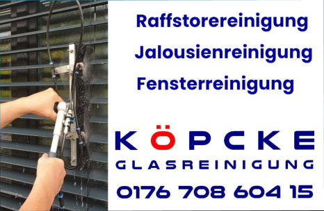 GLAS- und RAFFSTORESREINIGUNG für eine repräsentative Gebäudefassade überall wo Menschen zusammenkommen ist Sauberkeit und Hygiene eine wichtige Grundlage für eine angenehme, leistungsfördernde Atmosphäre. Die Glas- und Raffstorereinigung Köpcke schafft die Voraussetzung für ein modernes hocheffizientes Reinigungsverfahren. JETZT FENSTER UND RAFFSTORES REINIGEN LASSEN